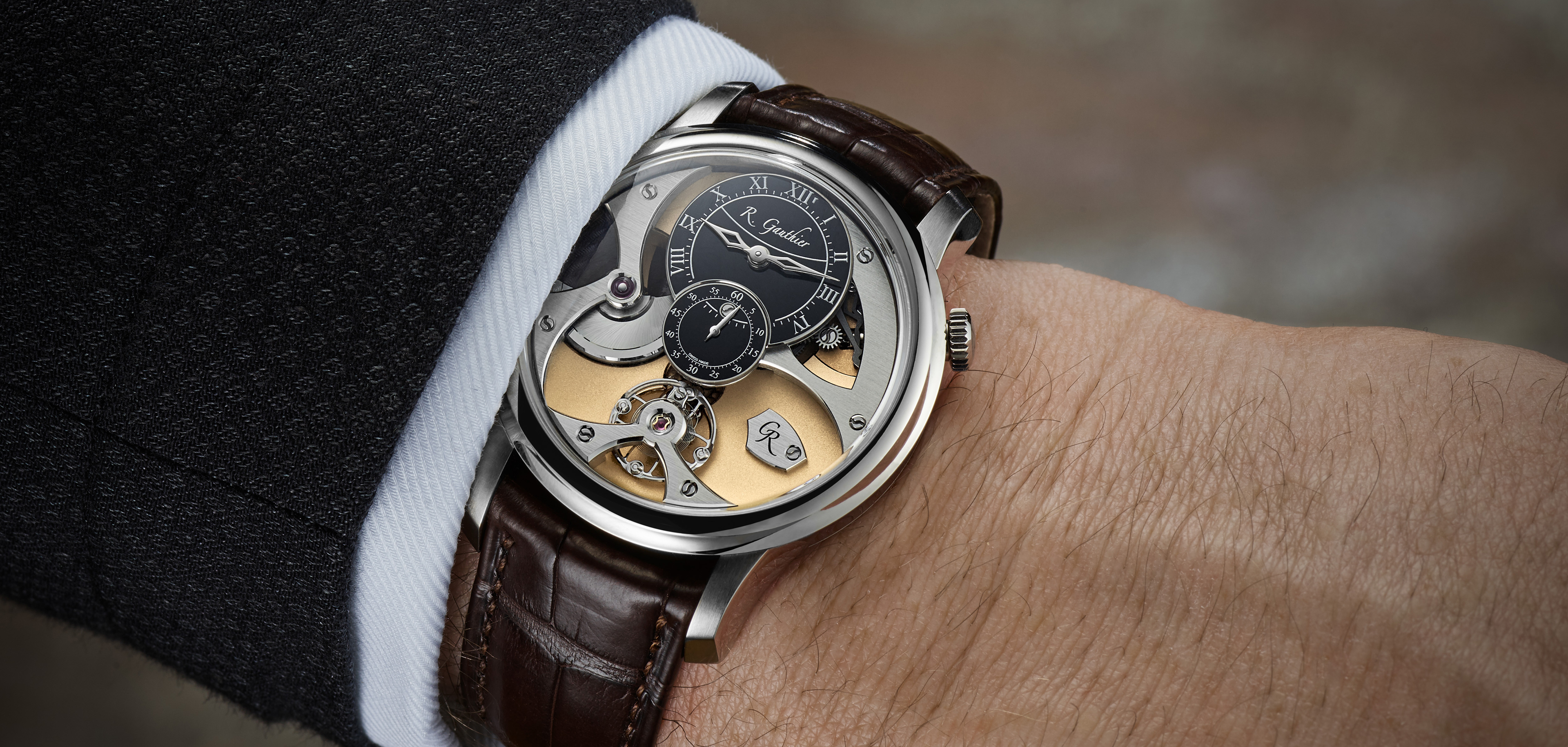 Featuring a dial-side combination of gilded mainplate and palladium-treated bridges framed by a white gold case, the Insight Micro-Rotor white gold limited editions see Romain Gauthier present his acclaimed time-only movement.