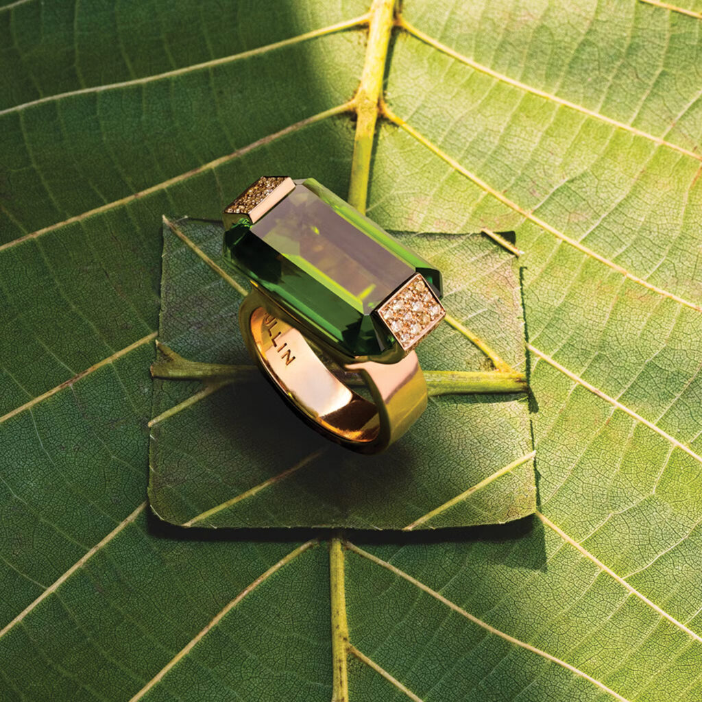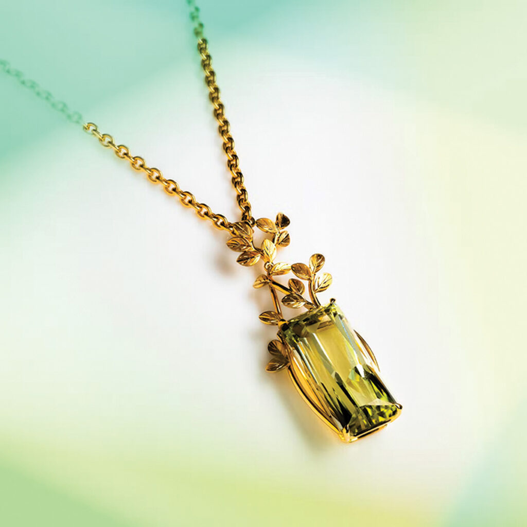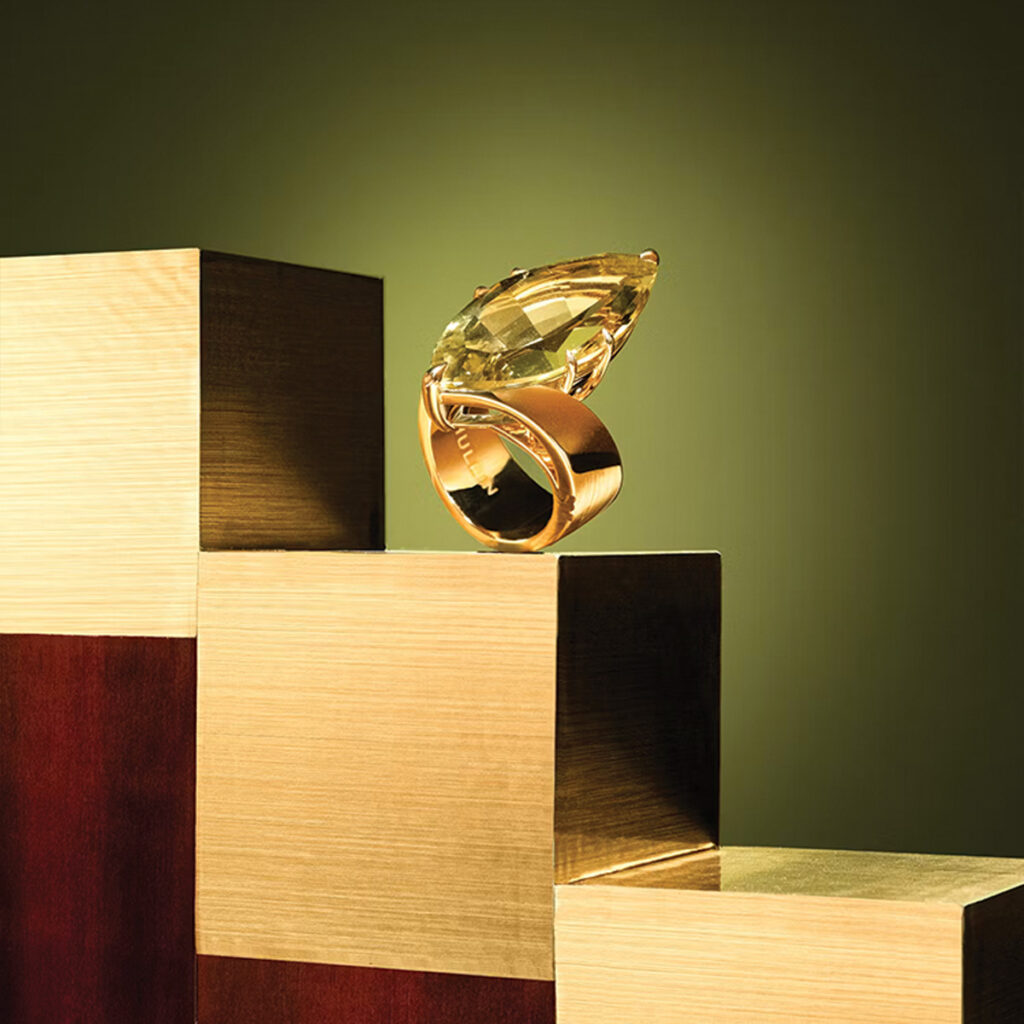 Well, both options are possible, because if you pick just a gold piece, for example – a gold bracelet or necklace – there are no stones. So, you have to think about the design without the stones. But I’m really taken with precious stones, because they are concentrated light within a crystal. There is nothing else that can reflect light as beautifully as a crystal. Funnily enough, when you see the rough crystal, it doesn’t reveal the light very clearly. But it’s fascinating – it’s all to do with colours and how they come to life. It’s also intriguing that the colours depend on the light source: daylight or artificial light. This is something that truly fascinates me. Then, being able to cut the stone and think about how I can embed it into a piece of jewellery is both challenging and interesting.