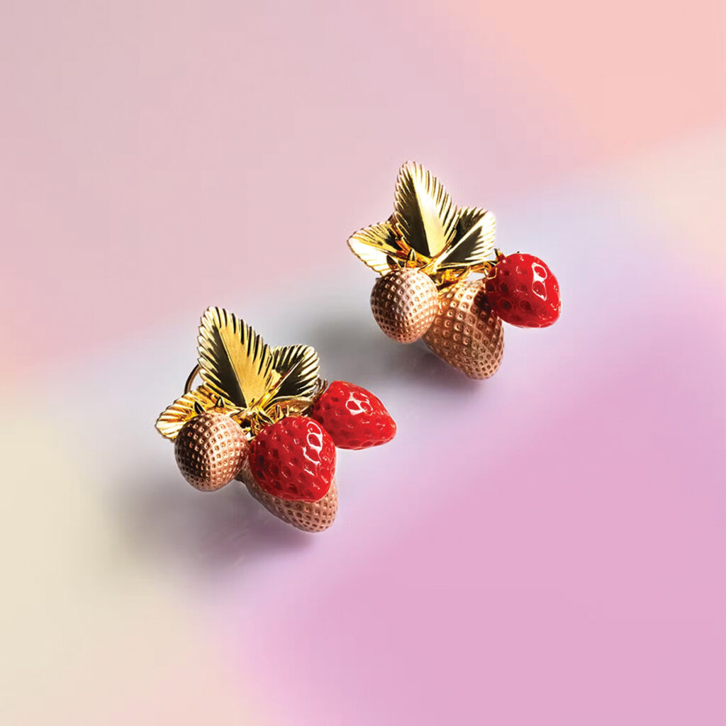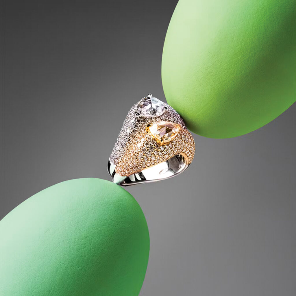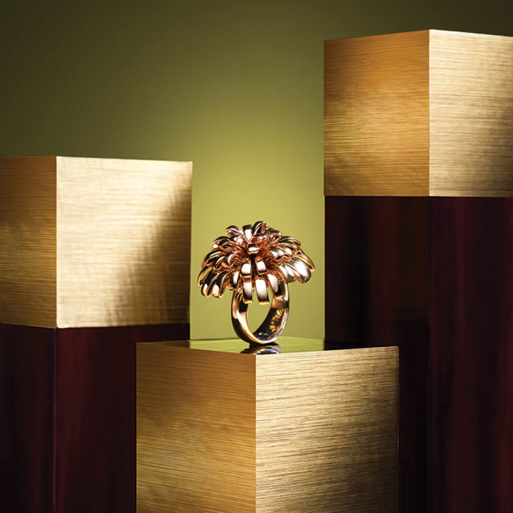 Well, both options are possible, because if you pick just a gold piece, for example – a gold bracelet or necklace – there are no stones. So, you have to think about the design without the stones. But I’m really taken with precious stones, because they are concentrated light within a crystal. There is nothing else that can reflect light as beautifully as a crystal. Funnily enough, when you see the rough crystal, it doesn’t reveal the light very clearly. But it’s fascinating – it’s all to do with colours and how they come to life. It’s also intriguing that the colours depend on the light source: daylight or artificial light. This is something that truly fascinates me. Then, being able to cut the stone and think about how I can embed it into a piece of jewellery is both challenging and interesting.