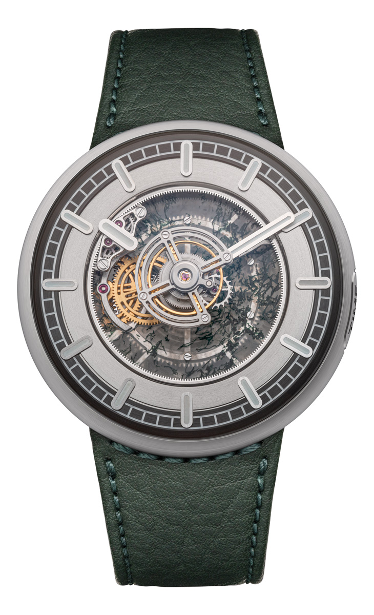 In 2019, a year before the bankruptcy of RJ Watches, a watch brand that had caused such a stir among trendsetters, I interviewed its CEO, Marco Tedeschi. He was and still is one of the youngest entrepreneurs in the industry: in 2020, he quickly regained his sense of direction and founded a design studio, Kross. Soon after, Kross Studio began launching watches designed to appeal to the fans of Justice League, Looney Tunes, Star Wars or Game of Thrones. This bet on celebrity which Tedeschi is renewing (while at RJ Watches, he also pursued the exploitation of cult pop landmarks in watchmaking) is risky and subject to the whims of fans who must be willing (and able) to purchase themed, ultra-limited edition (or even one-off) timepieces that are extremely expensive. However, not all Kross Studio productions bear a pop-cult visual signature; this is the case for the KS-05 Central Floating Tourbillon Titanium Moss Agate, a one-off timepiece (CHF 98,000) that showcases the mechanism (the manual winding calibre KS7005) and, of course, the tourbillon, the manufacturer also capitalising on the aesthetic values of the moss agate dial.