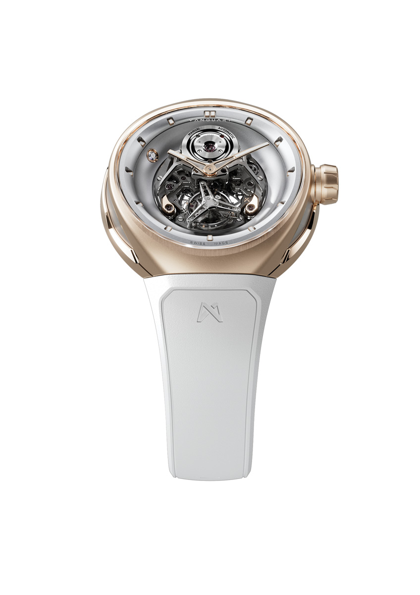 An independent brand, Vanguart was founded in 2021 by a team of specialists and entrepreneurs with relevant experience in watchmaking and finance: Thierry Fischer, Jérémy Freléchox, Axel Leuenberger and Mehmet Korutürk. It is worth noting the audacity of the programme that the brand’s name sums up, with innovation and aesthetics as the main coordinates; the challenge is not only to remain relevant in a stylistic universe where tastes change at a dizzying pace, but to actually become a trendsetter. After the first model, the Black Hole Tourbillon, launched in three editions of eight pieces each (titanium – CHF 290,000, platinum and rose gold – CHF 320,000), Vanguart now comes up with the spectacular Orb, a hand-finished flying tourbillon, whose calibre can be powered by both self-winding and manual winding. The movement is housed in a 41mm titanium or rose gold case, which showcases a layered structure: below the hour and minute display we find the tourbillon (at six o’clock), and these elements are framed by the trajectory of the diamond adorning the orbital oscillating mass. According to Mehmet Korutürk, President of Vanguart, the aim of this project is to “strengthen our position in the haute horlogerie segment by enriching our collection with a model that fuses elegance and futurism in a unique way. The Orb is an expression of our long-term vision and our commitment to develop exceptional creations that broaden the appreciation of modern watchmaking by introducing new possibilities.” As we can see, aspirations are high and it remains to be seen how the collectors will respond.
