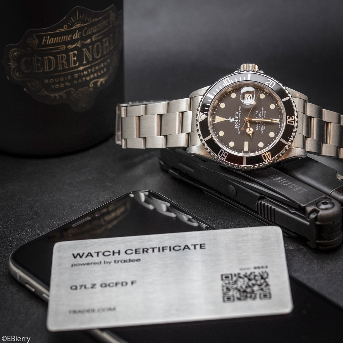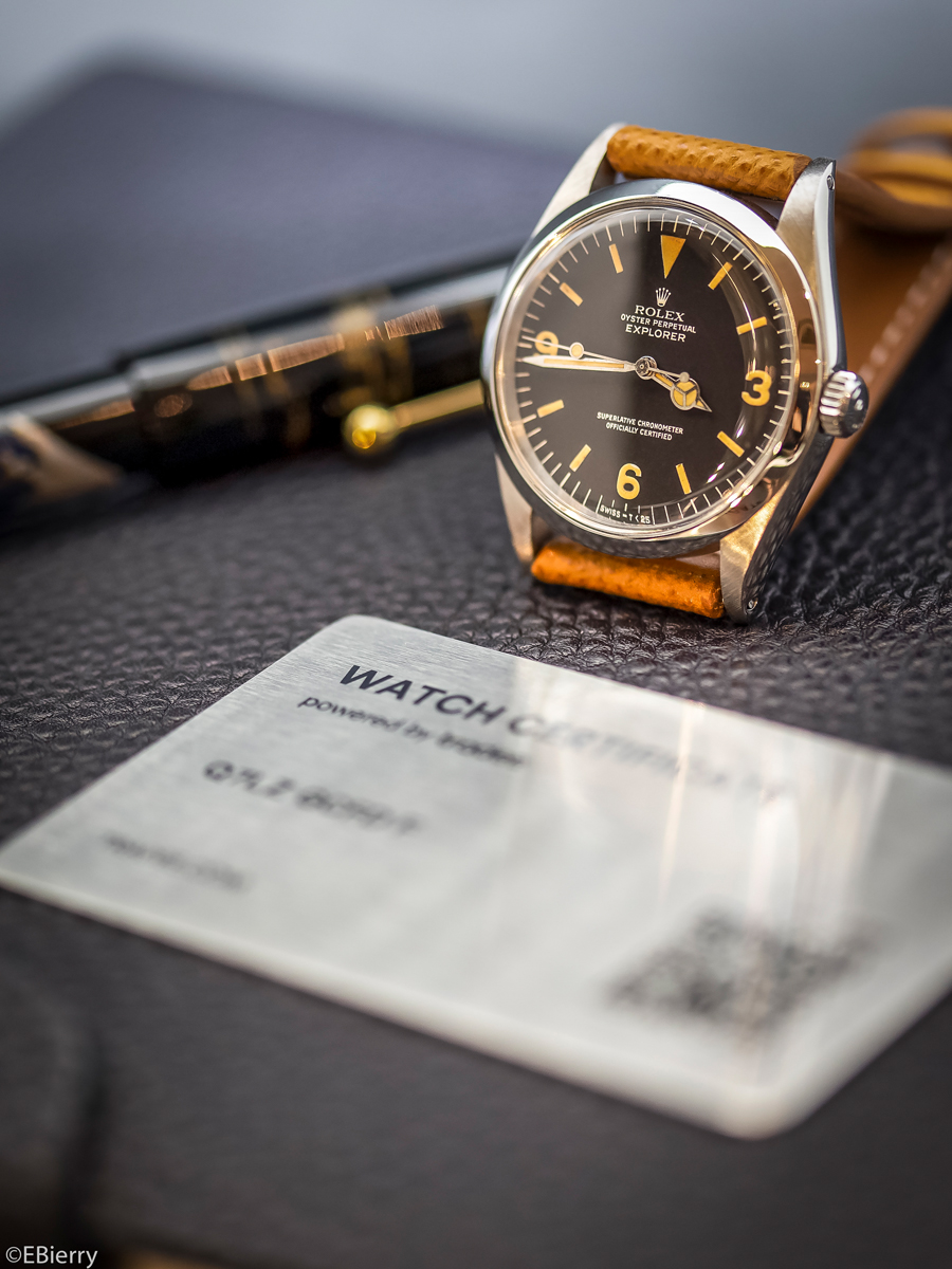 To earn the certificate, 42 control points are analysed and noted by a professional watchmaker to confirm the year of manufacture, reference, unique serial number, caliber name, case material, general state, water resistance, official purchase papers, servicing, etc. A second control is then made by an independent Expert to enable the issue of the 28 g. brushed steel certificate the size of a credit card. With its QR (Quick Response) Code, it provides information instantly about your watch, its value, and the identity of its current owner.