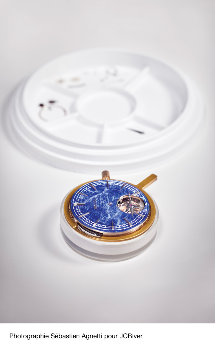Independent manufactures do not shy away from unusual dials. One such example is the brand introduced last year by Jean-Claude Biver and his son Pierre, simply called Biver. Biver’s titanium Carillon Tourbillon Biver is adorned with a domed blue sodalite dial, which is a challenge in itself; for the rose gold watch, the brand used gray obsidian. “We chose these stones for their spiritual attributes and for what they exude. For example, sodalite has the ability to soothe and even has a protective quality,” said Pierre Biver when introducing the brand.