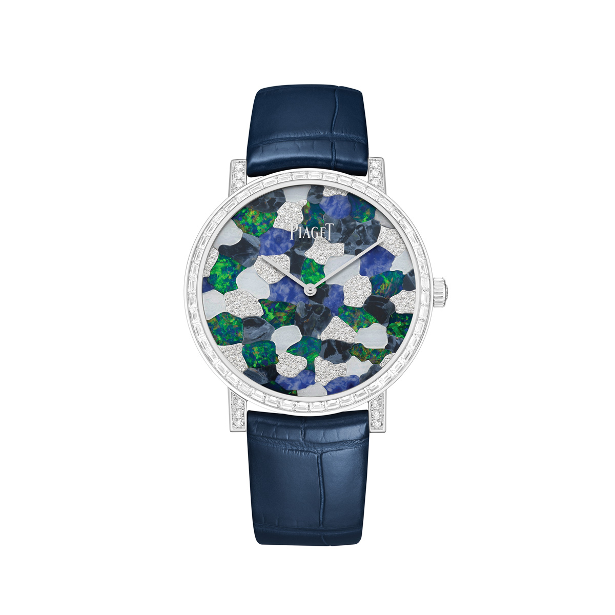 Today, Piaget also uses semi-precious stones for watches in its high jewellery collections. Thus, the Metaphoria collection, introduced last year, includes a beautiful Venilia ladies’ jewellery watch, whose black opal dial is surrounded by a waterfall of diamonds. The Alitura model, on the other hand, uses one of the crafts Piaget is famous for – i.e. marquetry – on its dial, a decoration composed of miniature pieces of black opal, chalcedony or sodalite.