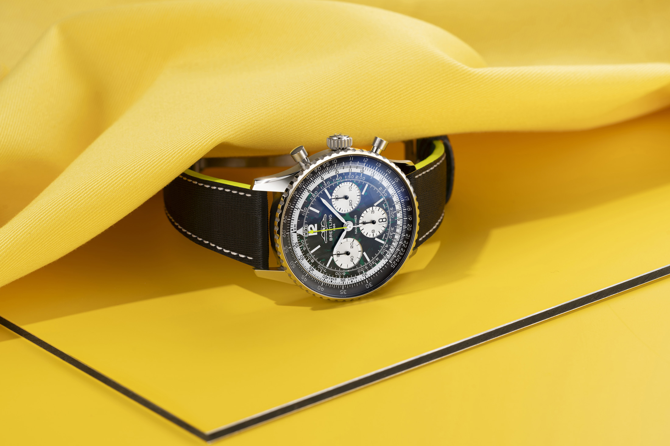 The first tangible expression of the Breitling–Aston Martin partnership is the Navitimer B01 Chronograph 43 Aston Martin Aramco Formula One™ Team. Limited to 1,959 pieces—a nod to Aston Martin’s first F1® entry—the watch is a fusion of racing DNA and horological innovation.