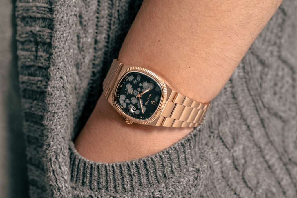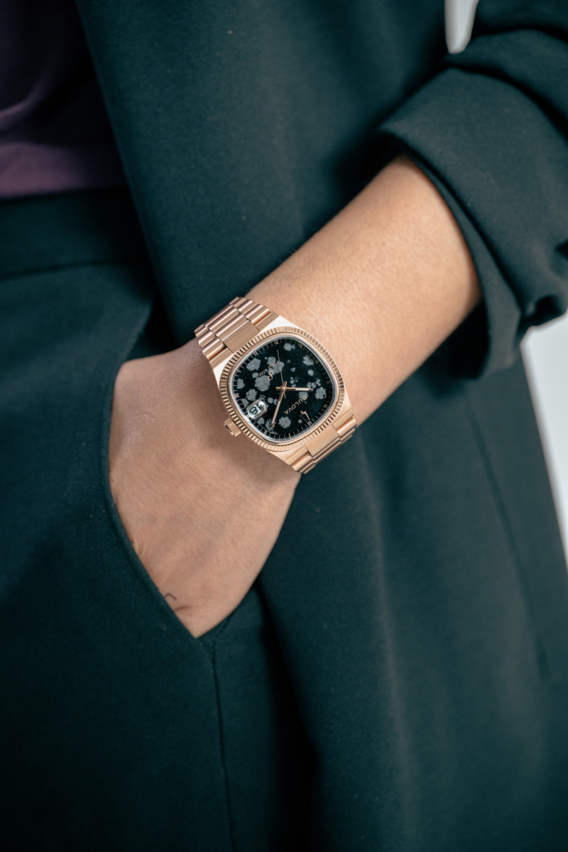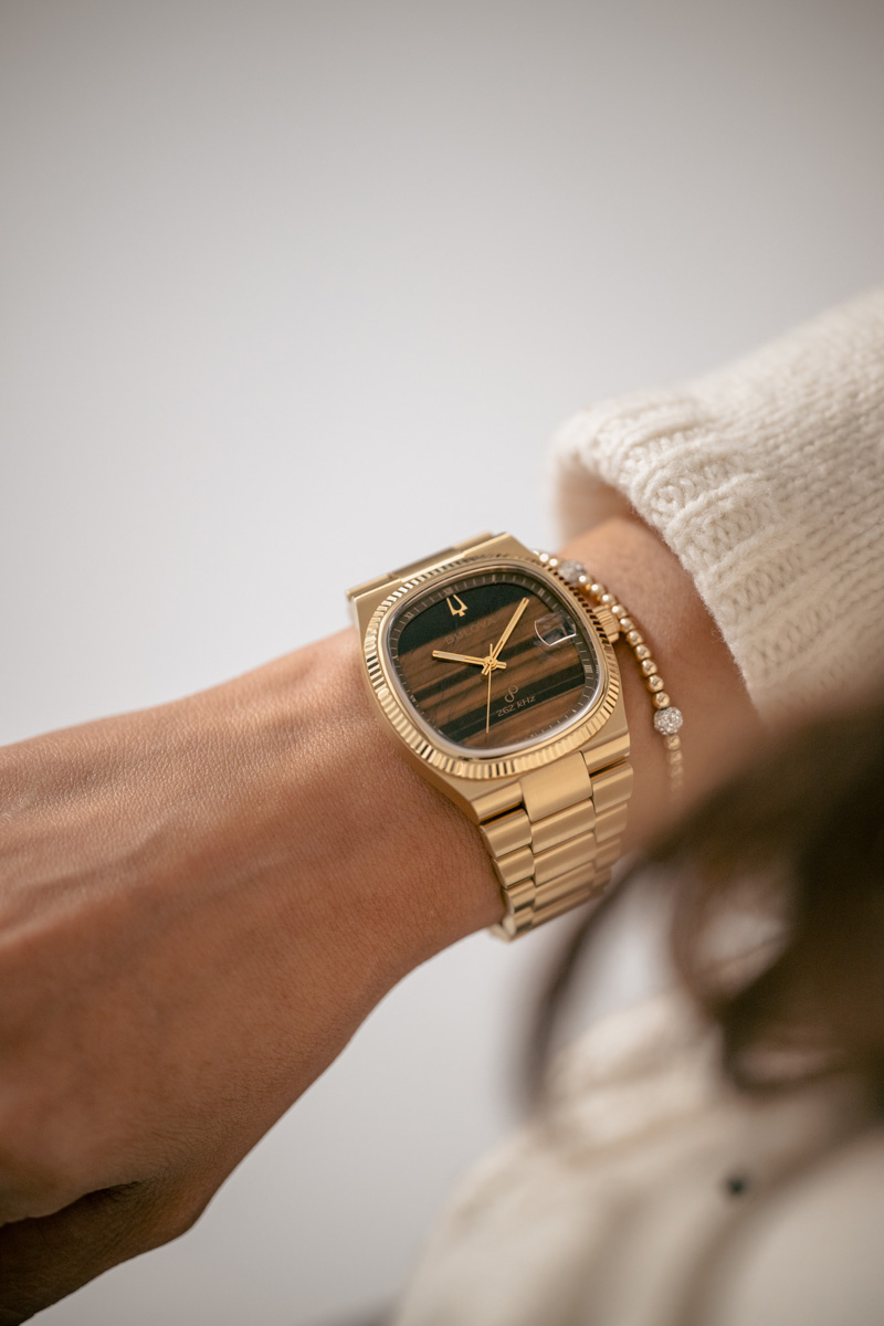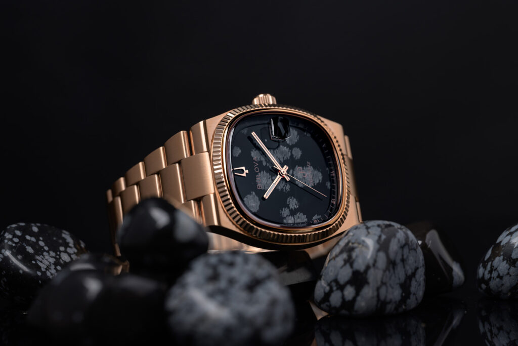 The Bulova x Complecto Super Seville Stone Dial collection merges classic design elements with modern craftsmanship, honoring the iconic 1970s Super Seville design. A time of bold self-expression, this collection uses rich stone dials to capture the free spirit of that era and the essence of the ’70s, reimagining it with a sophisticated, contemporary style for today’s collectors.
