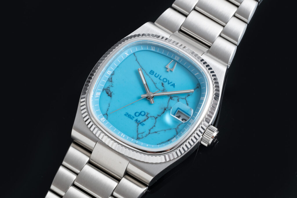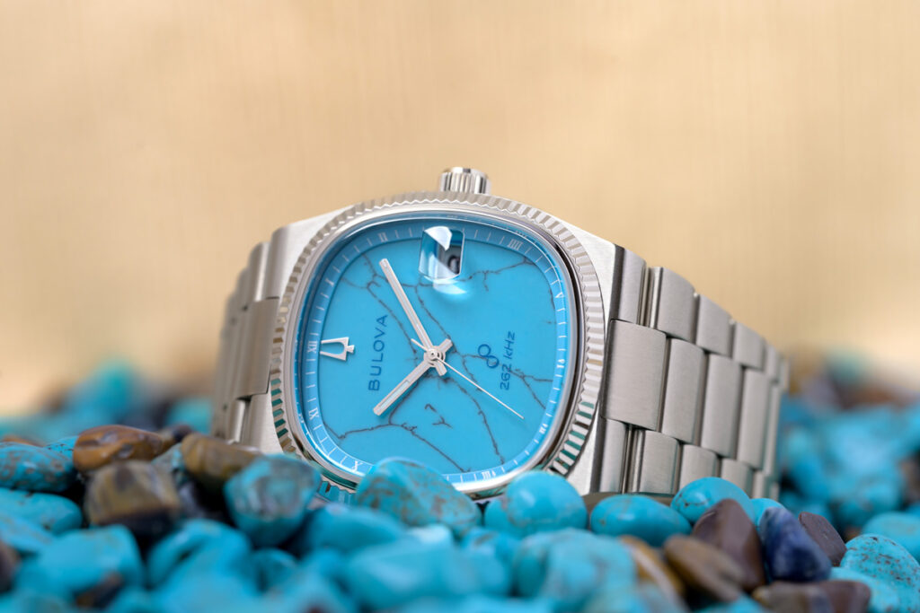 Limited to 718 pieces in each stone dial, the collection pays homage to New York City by featuring the iconic 718 area code, a nod to the vibrant culture of Queens, Bulova’s home borough, and the city as a whole. Queens is where Bulova was headquartered for many years at the iconic Bulova Corporate Center Building, a landmark that symbolized the brand’s enduring presence and legacy in the heart of NYC.