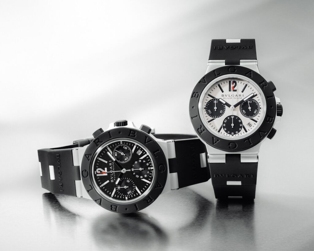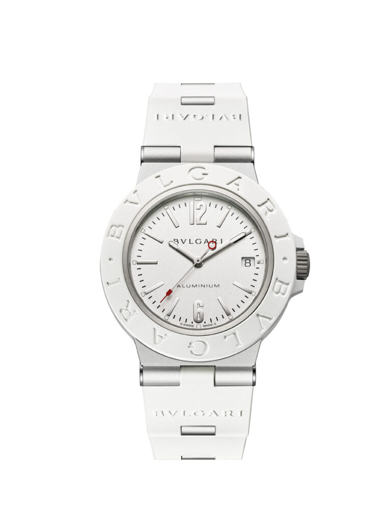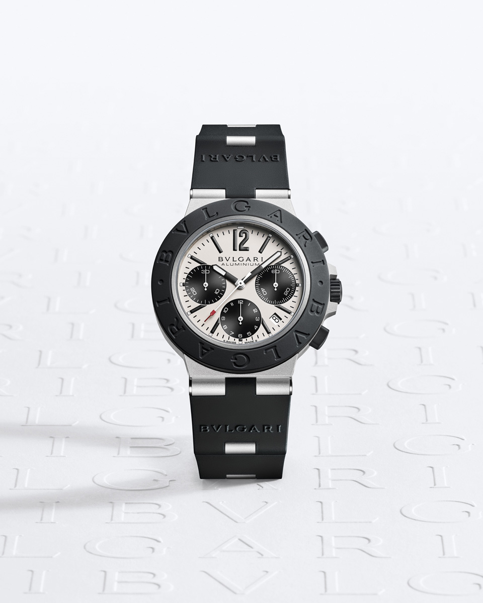 Launched for the first time in 1998, Bvlgari Aluminium captures again the zeitgeist with three striking new models. The latest models include the GMT version in a historic black and white livery, accented with a tantalising touch of red, the Smeraldo chronograph model, and the automatic Solotempo version in pristine white. Each watch is a testament to character and a discerning sense of design. These interpretations of the Bvlgari Aluminium pulsate with the Maison’s italianità, that unmistakable Italian flair that captures its relaxed and unmatched style. Disruptive and graphic, yet iconic as ever, this year’s creations showcase new levels of creativity and freshness.