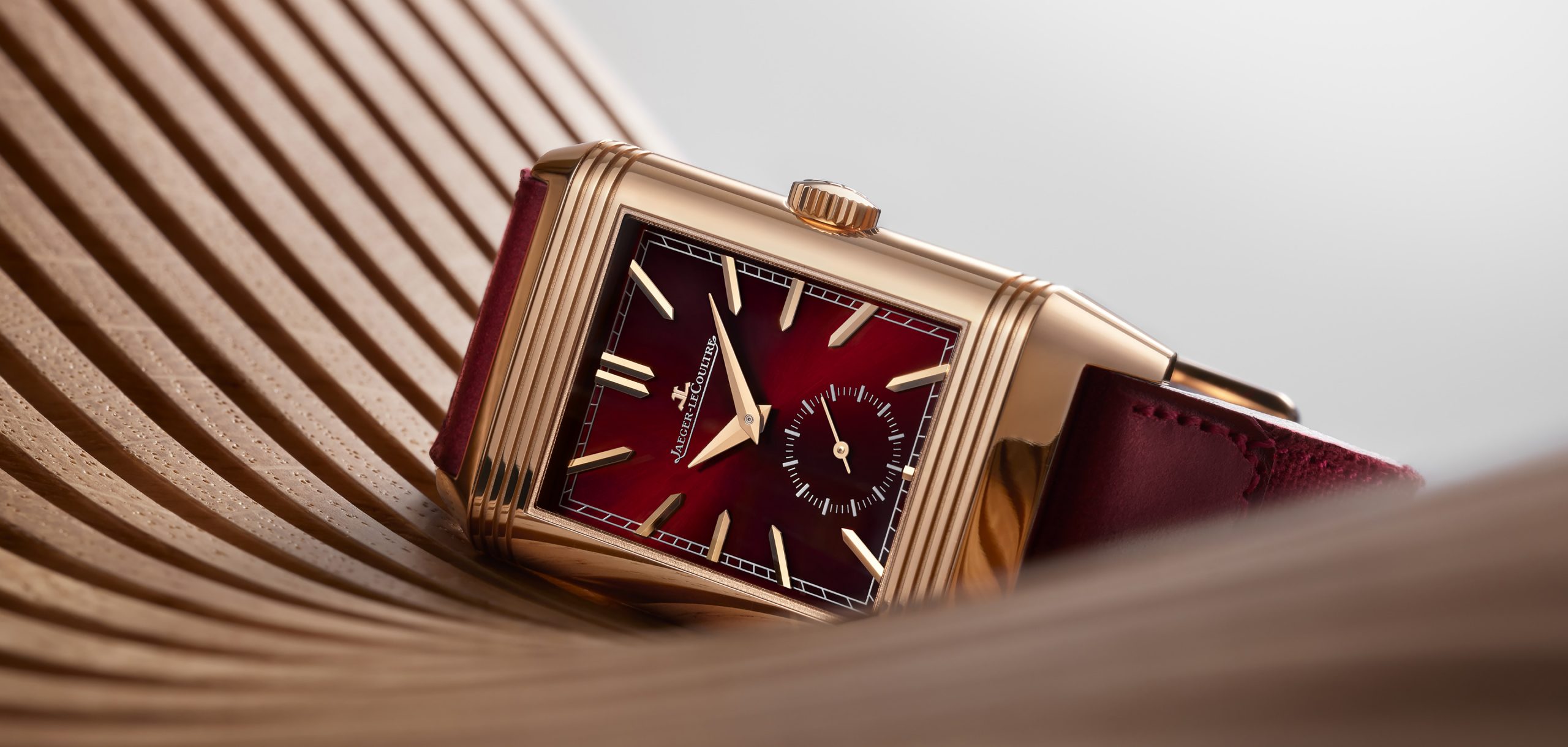 As the Reverso approaches its 90th anniversary in 2021, Jaeger-LeCoultre issues a limited edition, with a burgundy-red dial and pink gold case, the Reverso Tribute Duoface Fagliano Limited.