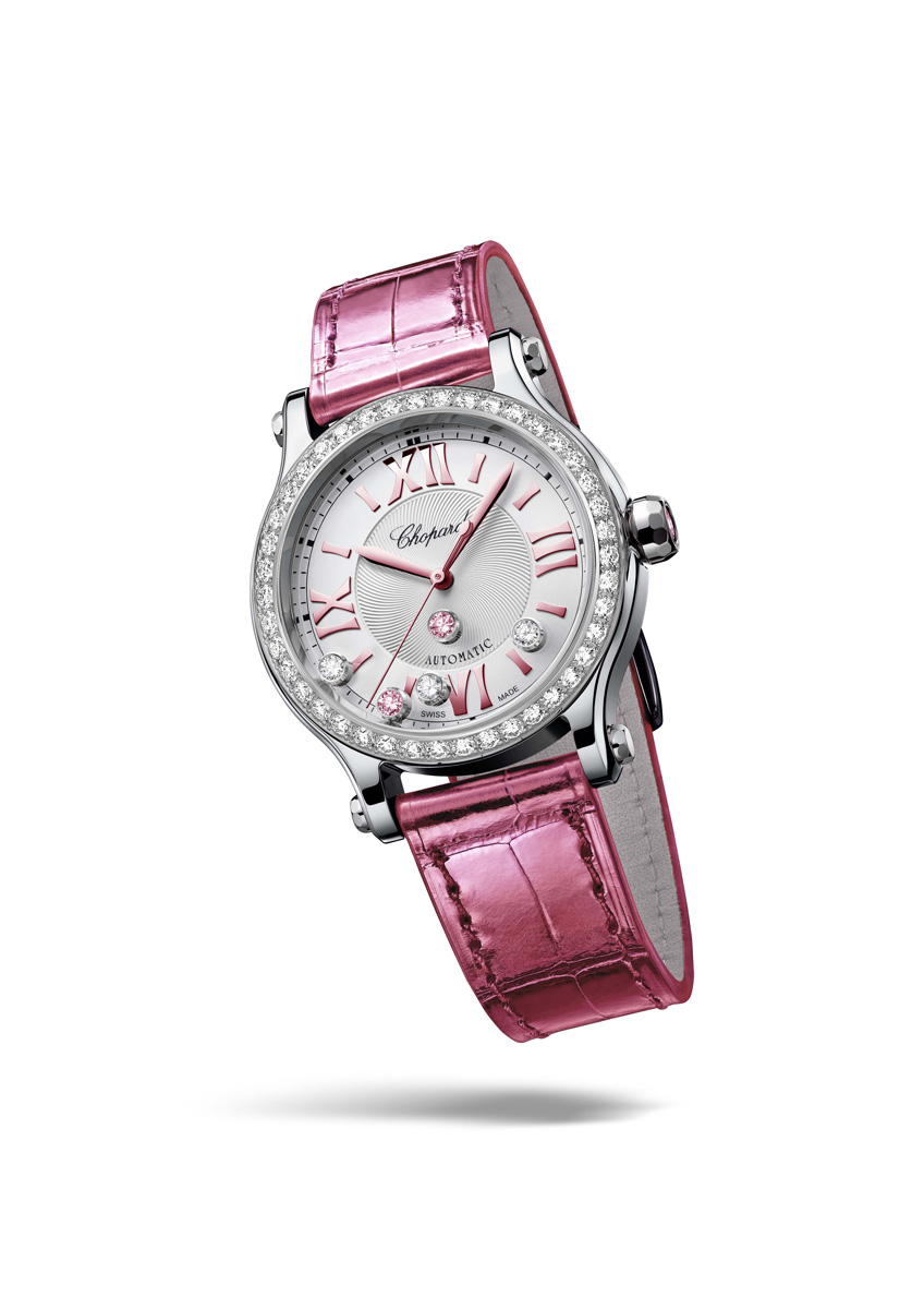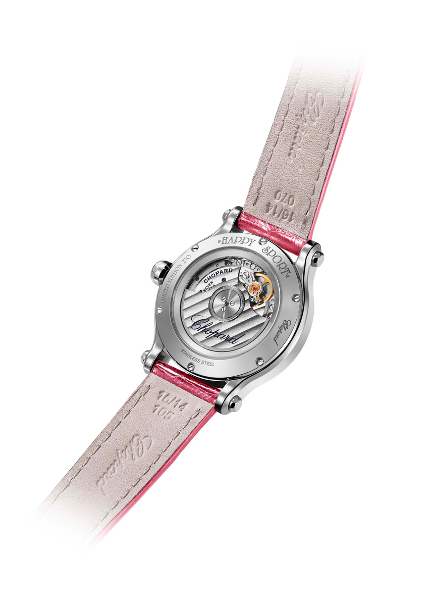 The latest Happy Sport limited edition distills everything that has made this iconic line a symbol of joy and creative freedom. Cloaked in radiant pink and produced in just 250 pieces, it pairs a diamond-set bezel with a silver-toned guilloché dial animated by a lively swirl of dancing diamonds and pink tourmalines. The playful colour theme extends to the strap and crown, while the 33 mm Lucent Steel™ case—crafted according to the golden ratio—houses the Chopard 09.01‑C automatic movement with a 42‑hour power reserve. Combining jewellery artistry, mechanical finesse and responsibly sourced materials, this new interpretation continues the Happy Sport legacy launched in 1993: a watch that celebrates movement, spontaneity and the irrepressible Joie de Vivre embraced by women around the world.