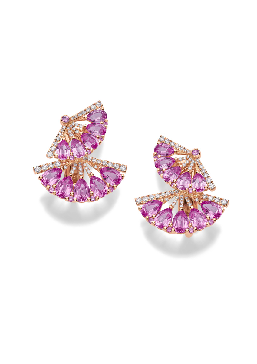 The Maison also enriches its L’Heure du Diamant collection with a poetic new jewellery ensemble inspired by the lightness and elegance of a ballerina’s tutu. Crafted in ethical rose gold and set with pink sapphires and diamonds, the earrings and matching necklace reinterpret a beloved Red Carpet design, capturing the fluttering movement of a dancer’s skirt through airy, overlapping motifs that seem to float with effortless grace. Their delicate choreography of colour and brilliance reflects the Maison’s deep affinity for dance, while reaffirming L’Heure du Diamant as the expressive, jewel‑centred soul of Chopard—a collection shaped by the Scheufele family’s enduring mastery of diamond‑setting and contemporary artistry.