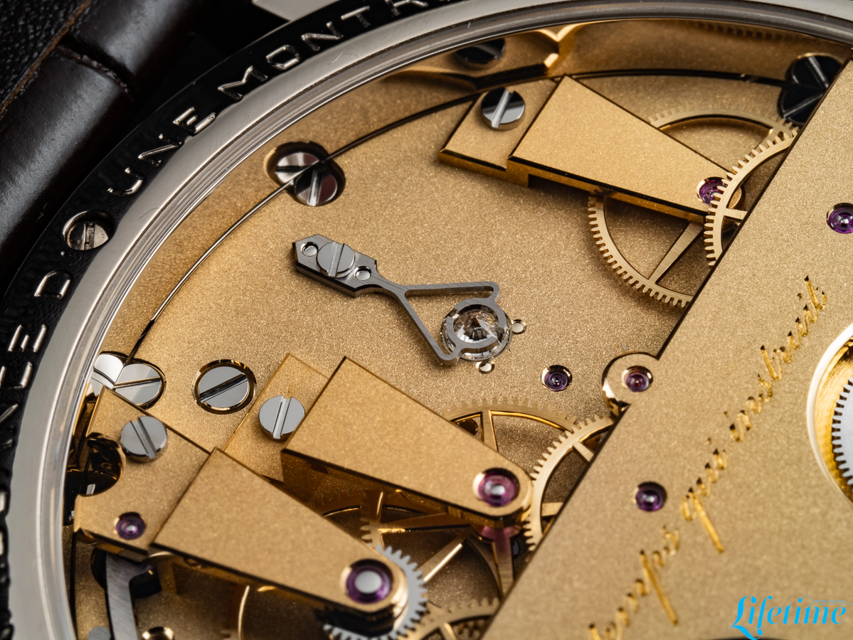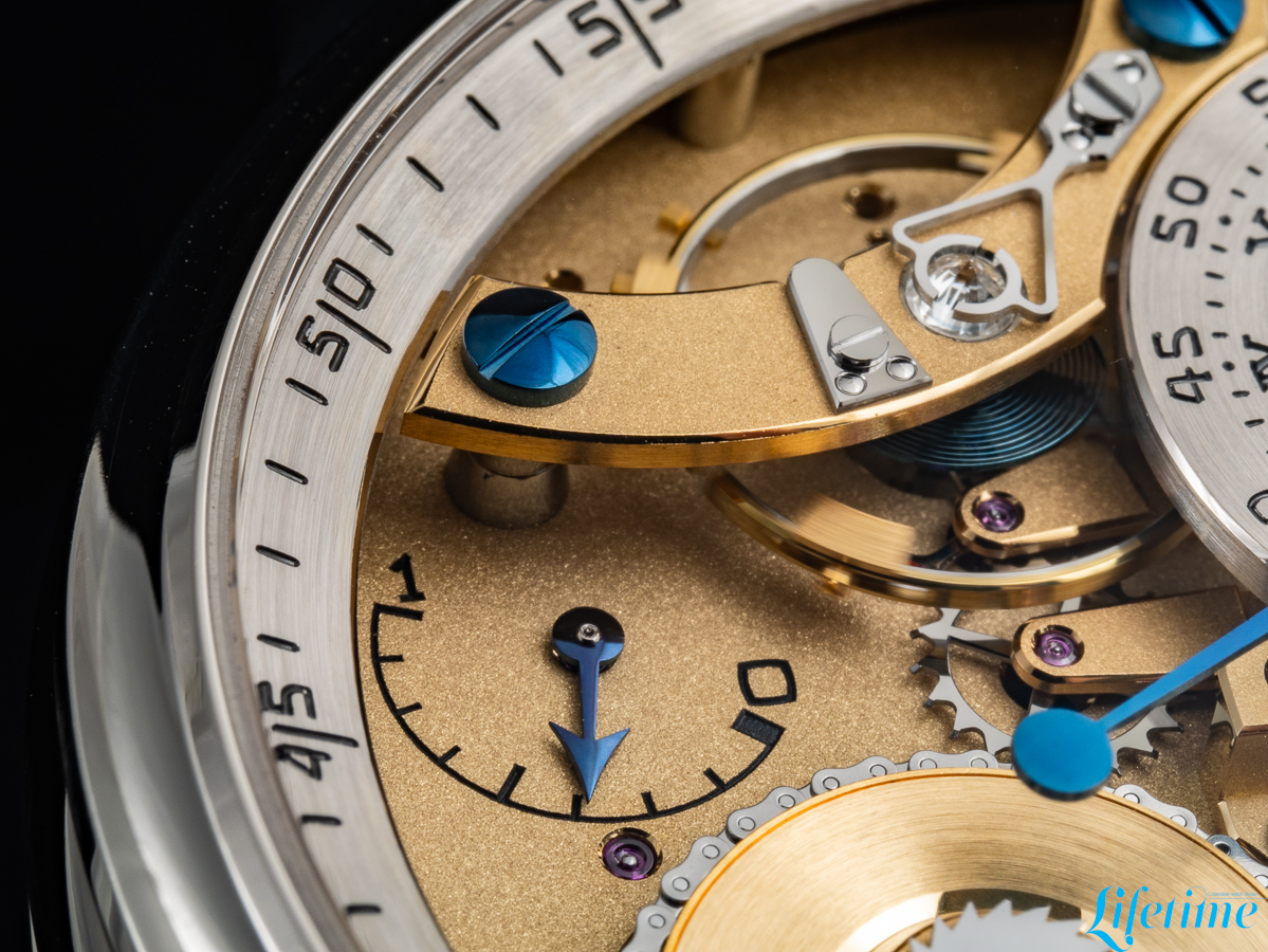Ferdinand Berthoud Naissance d'une Montre 3The secondary dial traces the movement’s periphery as a raised flange supported by pillars, displaying the seconds alongside a power-reserve indicator engraved directly onto the mainplate. Despite measuring over 25mm in length, the flame-blued steel seconds hand is extremely thin, requiring unwavering focus throughout its production. Creating the hours hand alone takes nearly two full days: 54 micromechanical operations plus a further thirteen dedicated to decoration.