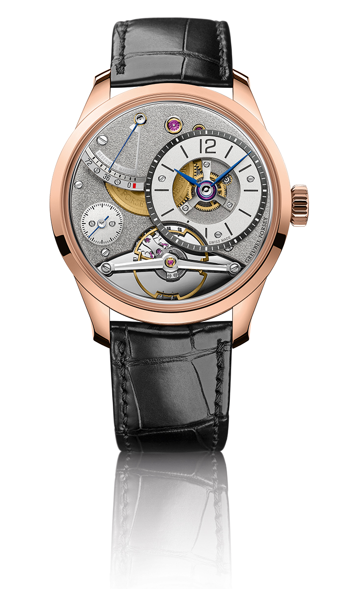 The new timepiece is composed of 255 parts and the movement has been created especially to fit the specified dimensions, the challenge being not only to house the large balance wheel within a small space, but also more importantly to achieve a harmonious creation with optimal proportions. The 5N red gold version of the Balancier Contemporain plays on the differences in levels, materials, volumes and finishes, while perfectly illustrating the world of Greubel Forsey.