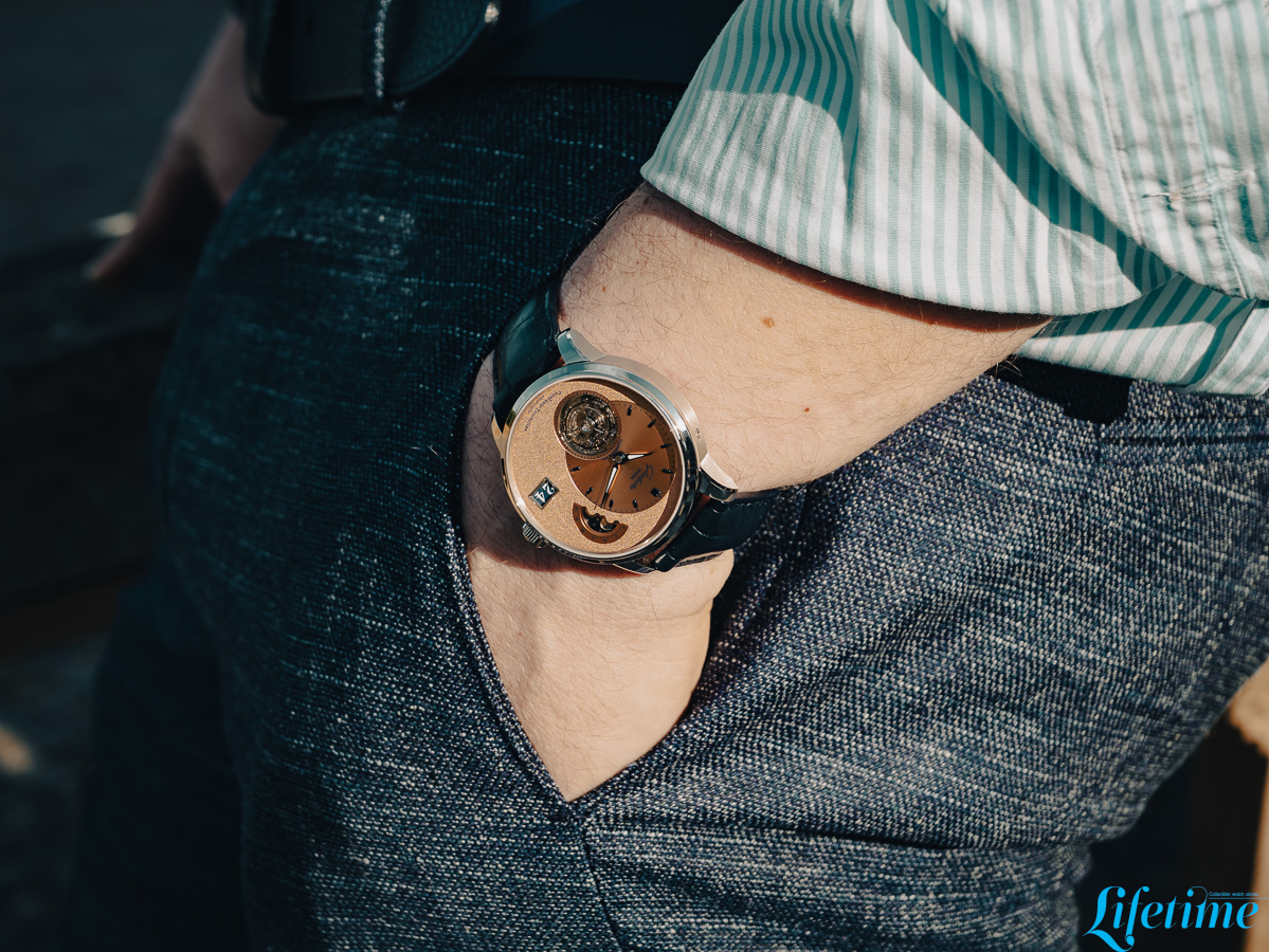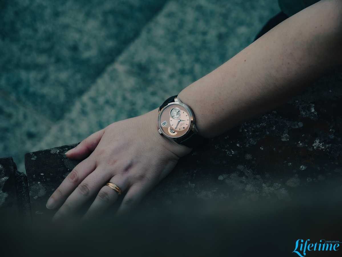 The tactile pleasure of exploring the complications, the visual delight of the perpetual dance of the flying tourbillon, and the delicate interplay of colour across the dial come together to create an intimate connection with the watch – a daily companion that rewards both quiet contemplation and casual enjoyment.