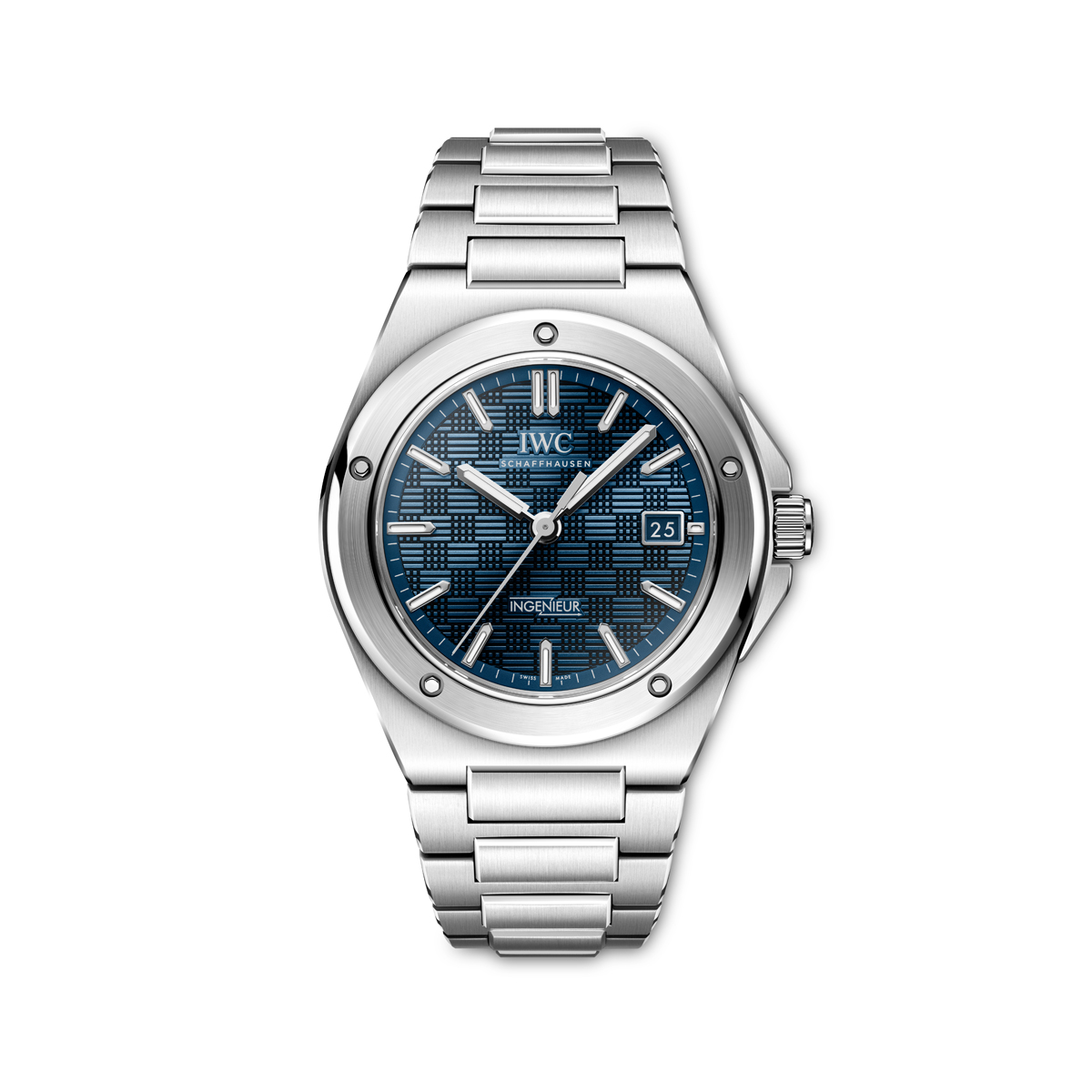 This new Ingenieur Automatic 40 impresses with its striking blue dial. The characteristic “grid” structure, consisting of small lines and squares, is stamped into the soft iron base using high pressure. Afterwards, the blue colour is applied with a PVD-coating. The rhodiumplated baton hands and the applied metal marker are all filled with Super-LumiNova® luminescent mass to ensure perfect legibility in all lighting conditions.ur adipiscing elit. Ut elit tellus, luctus nec ullamcorper mattis, pulvinar dapibus leo.