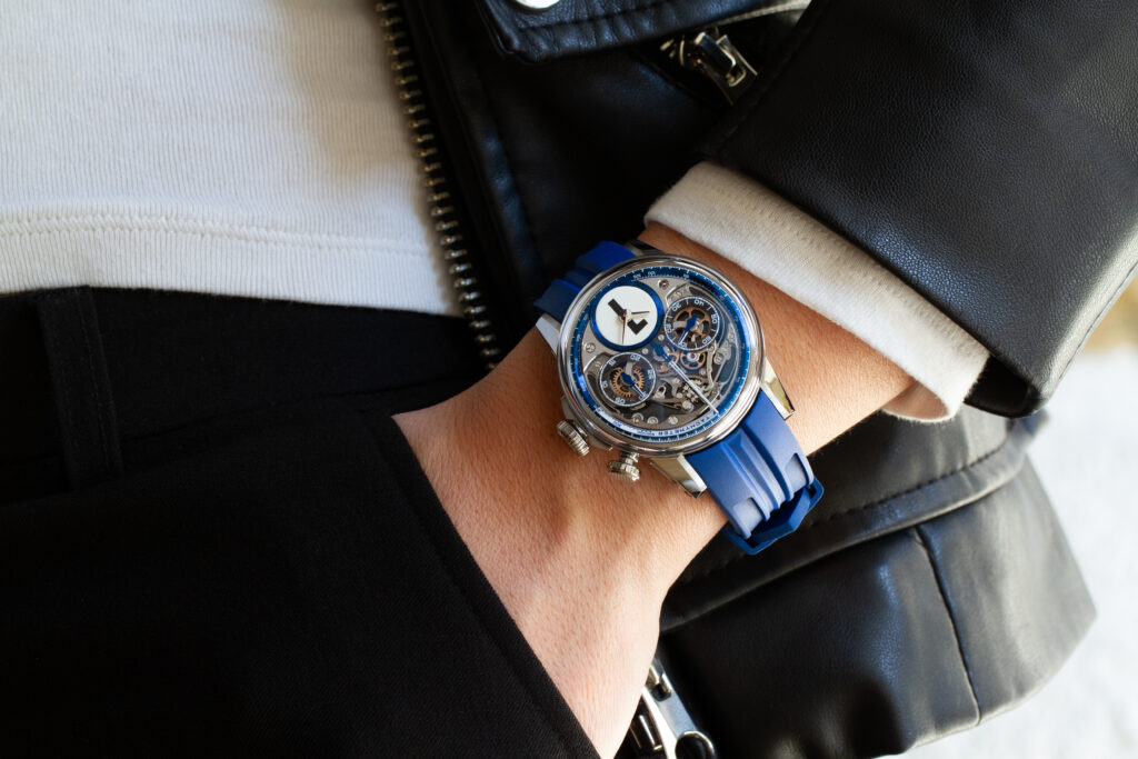 The Louis Moinet Rush is an electrifying tribute to speed, precision, and the glory of motorsport’s golden eras. Clad in an intense metallic blue that channels the spirit of Ecurie Ecosse’s iconic victories at Le Mans, this chronograph feels like a bolt of adrenaline on the wrist. Its lightweight titanium frame, aerodynamic silhouette, and bold, single-digit “lucky number” imbue the timepiece with the soul of a finely-tuned race car, marrying cutting-edge engineering with nostalgic legacy.