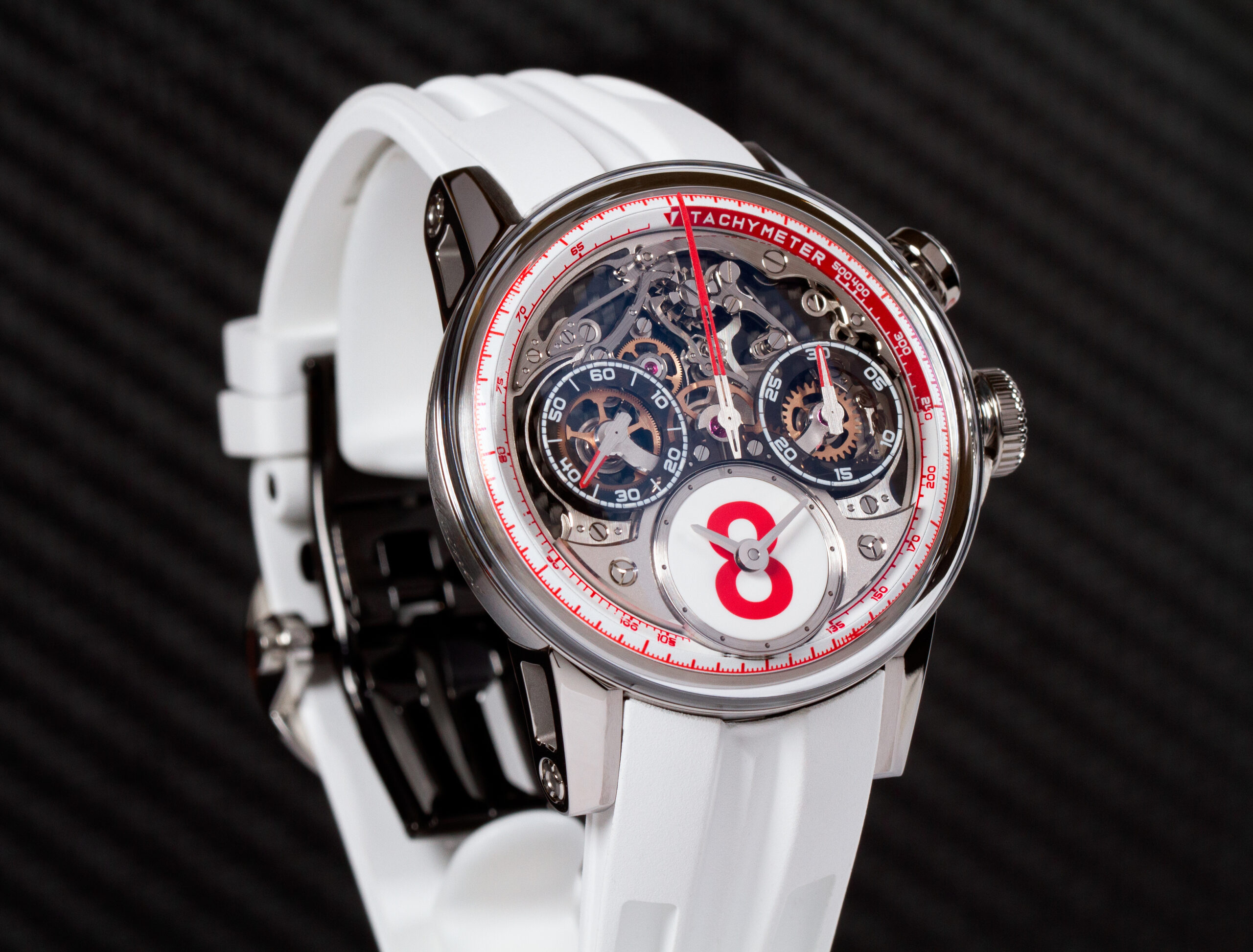 Both timepieces encapsulate the brand’s signature blend of high-performance horology and individualized design, with each watch tailored to its owner by a unique “lucky number.” The Rush stands out with a gleaming metallic blue finish, evoking the legacy of racing teams like Ecurie Ecosse whose name is etched into endurance racing history. Meanwhile, the White Fuji dazzles in pristine white accented with red—a nod to Japan’s iconic racing colours and its deep roots in Formula One.