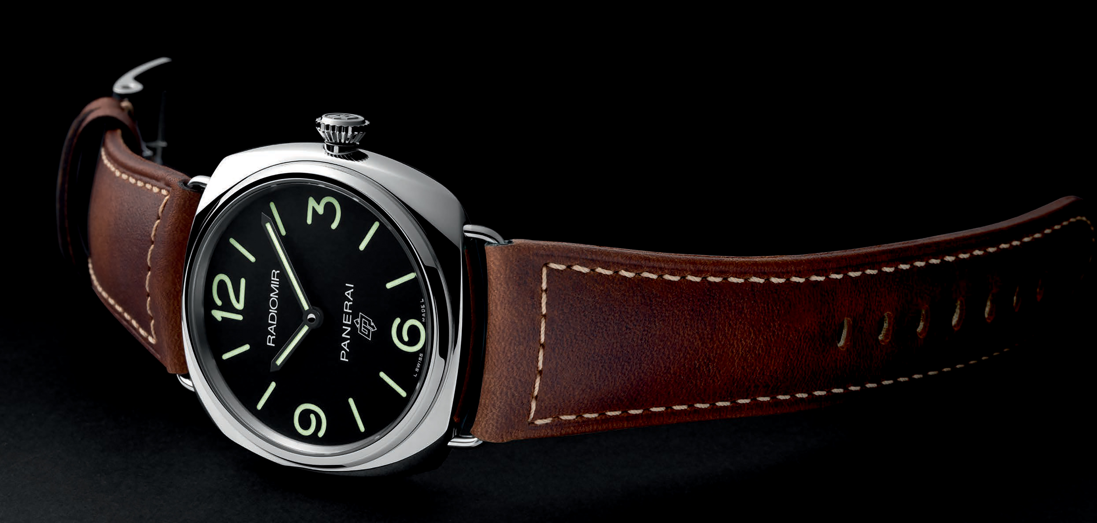 Both the new models, the Radiomir Logo 3 Days Acciaio (PAM00753) and the Radiomir Black Seal Logo 3 Days Acciaio (PAM00754), are water-resistant to 10 bar – a depth of about 100 metres – and each is supplied with a leather strap with contrasting beige sewing, fastened by a trapezoid steel buckle.