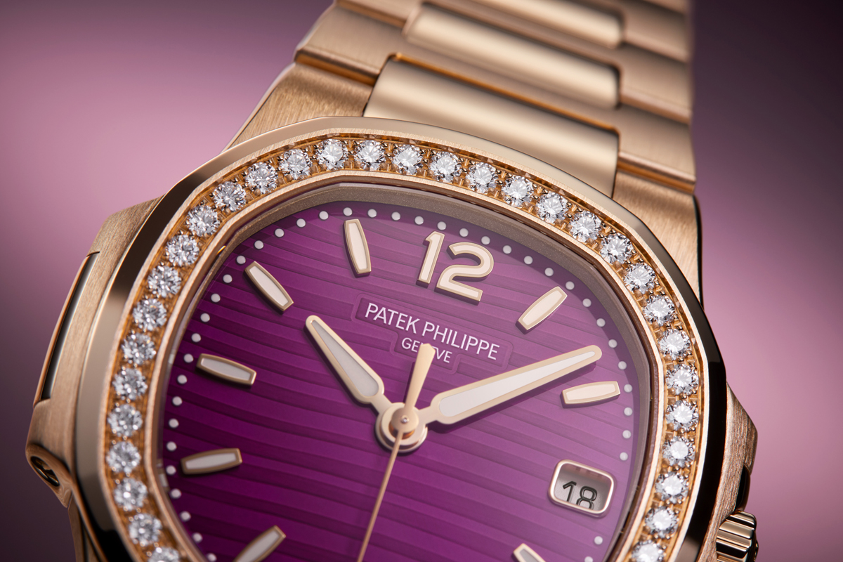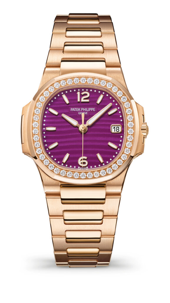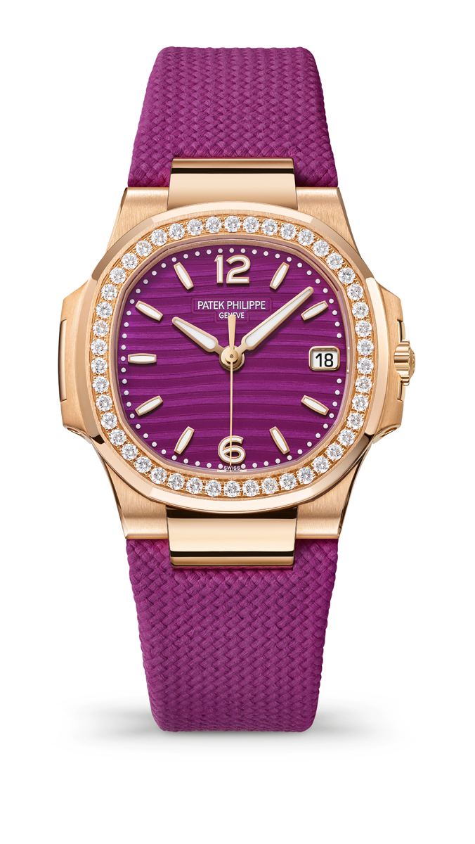 Ladies’ Nautilus References 7010R-013 and 7010/1R-013 are two new “elegant sports” models with gemset bezels and a purple decor