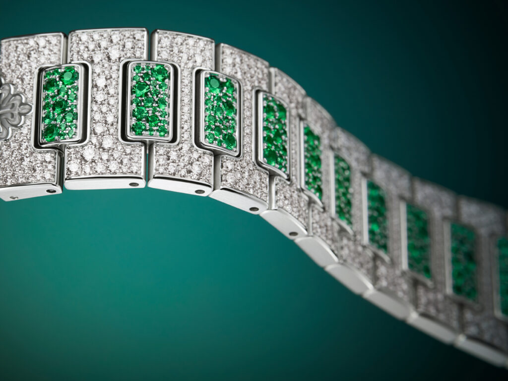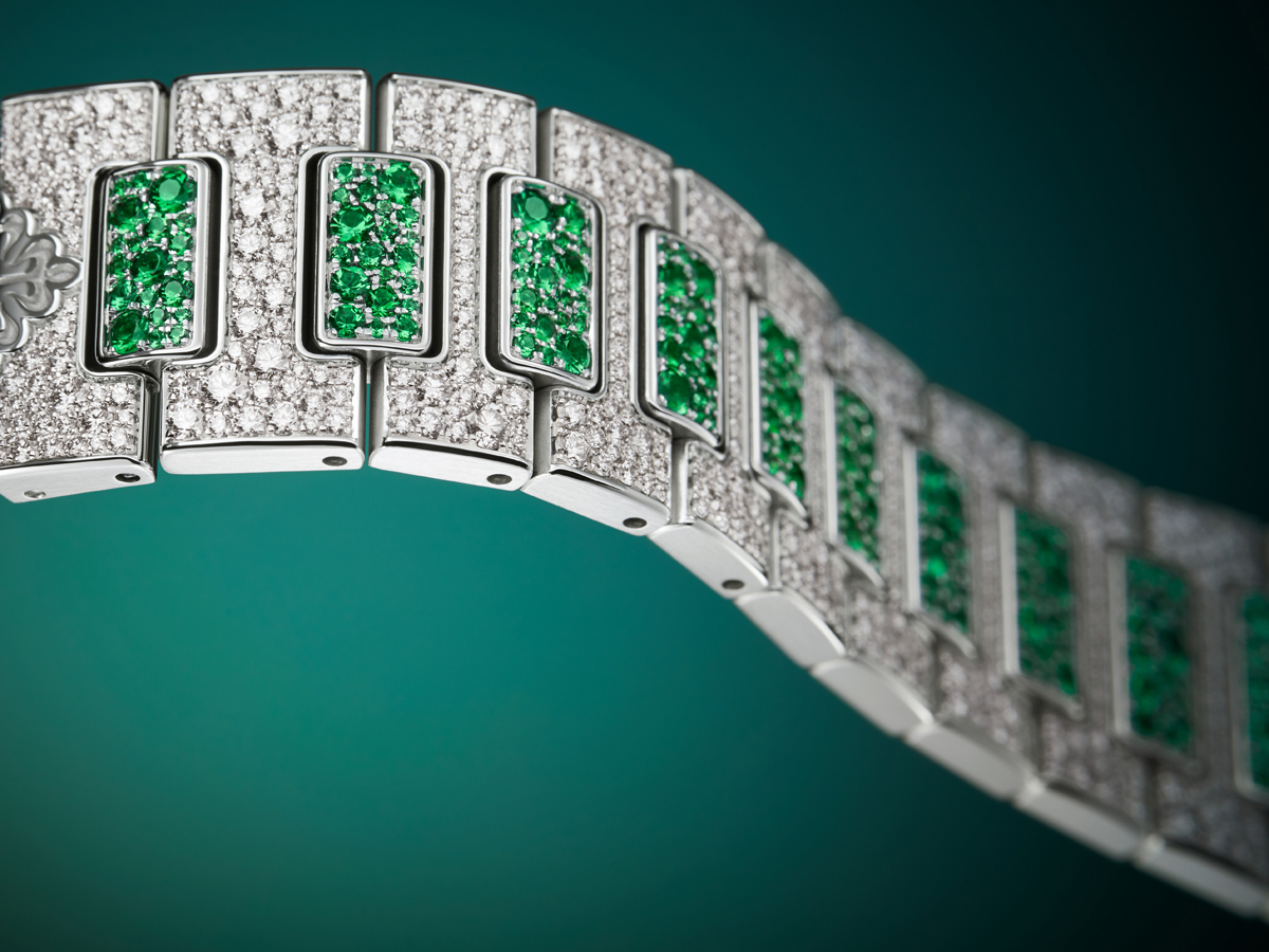 Here as in all the manufacture’s jewelry watches, the setting meets the stringent criteria of the Patek Philippe Seal, with Top Wesselton Pure diamonds, colored stones of the finest quality, impeccable stone-cutting, and a fixing method that ensures the stability of the settings and surfaces that are smooth to the touch.