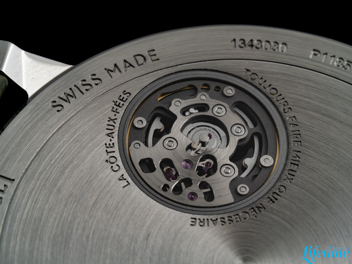 The 910P is powered by the calibre 910P – a self-winding movement with a peripheral rotor that winds from the edge of the movement rather than the centre, preserving both the view through the bridges and the overall slim profile of this timepiece. It beats at 3Hz (21,600 vph) and delivers a 48-hour power reserve – a peripheral rotor concept that, in my view, ranks as one of the smartest engineering decisions in ultra-thin watchmaking because it solves a practical issue without compromising the aesthetic.