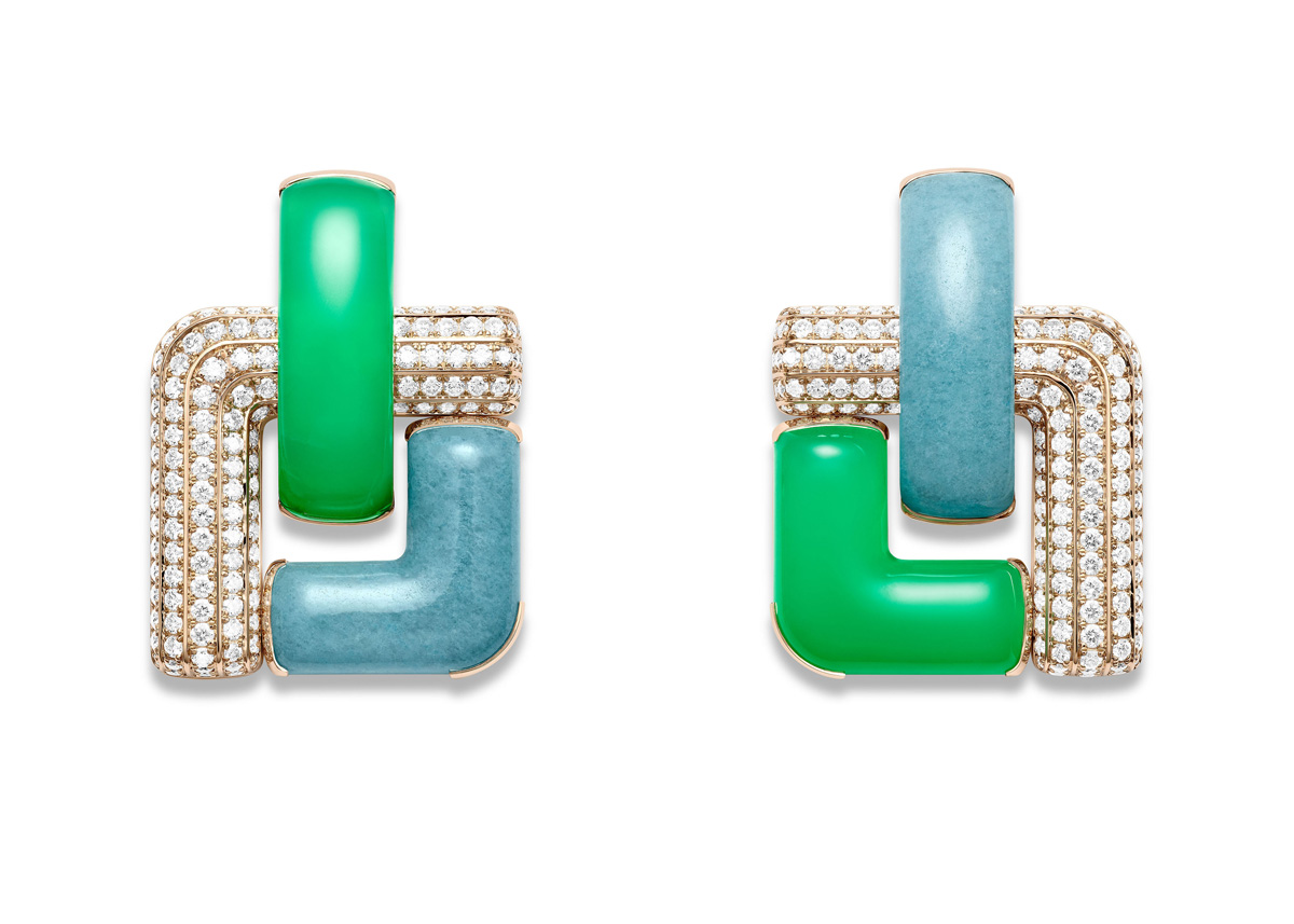 The 2025 High Jewellery collection in the Extraleganza series is the most daring and profound exploration and interpretation of Piaget’s heritage to date. Experimental, unexpected yet with warm echoes of familiarity, Shapes of Extraleganza is a study in form, colour, texture, light and volume, a supremely sophisticated evolution of Piaget’s high-energy game of shapes. Shapes within shapes, squares, triangles, zig zags, waves, circles, interlocked, overlaid, jostling joyfully in sculptural and conceptual, highly stylised compositions that perfectly harmonise fluidity and precision. Through 51 creations, Piaget plays with graphic lines, geometric angles, sliver-like triangles, as well as organic free form shapes and sensual curves, while referencing Pop Art, Op Art, the swirling psychedelic patterns of 70s fashion, the geometric rigour of Yves Saint Laurent’s 1965 Mondrian dress, and the generously rounded, plump contours of 60s design icons, such as the Egg and Bubble chair. Reflecting the high-low cultural mix that characterised 1970s society, High Jewellery meets Pop Culture.