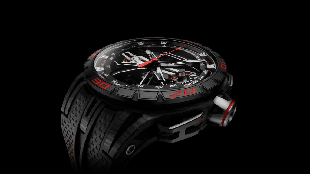 The Maison has also embraced mythology and motorsport to channel emotion into horology. Beginning in 2013, it launched the Knights of the Round Table series, combining fantasy and fine micro-engraving. By 2017, Roger Dubuis had entered the fast lane, forging partnerships with Lamborghini Squadra Corse and Pirelli Design. These collaborations translated high-octane inspiration into the world of watchmaking—from tire rubber straps to bold composite cases.