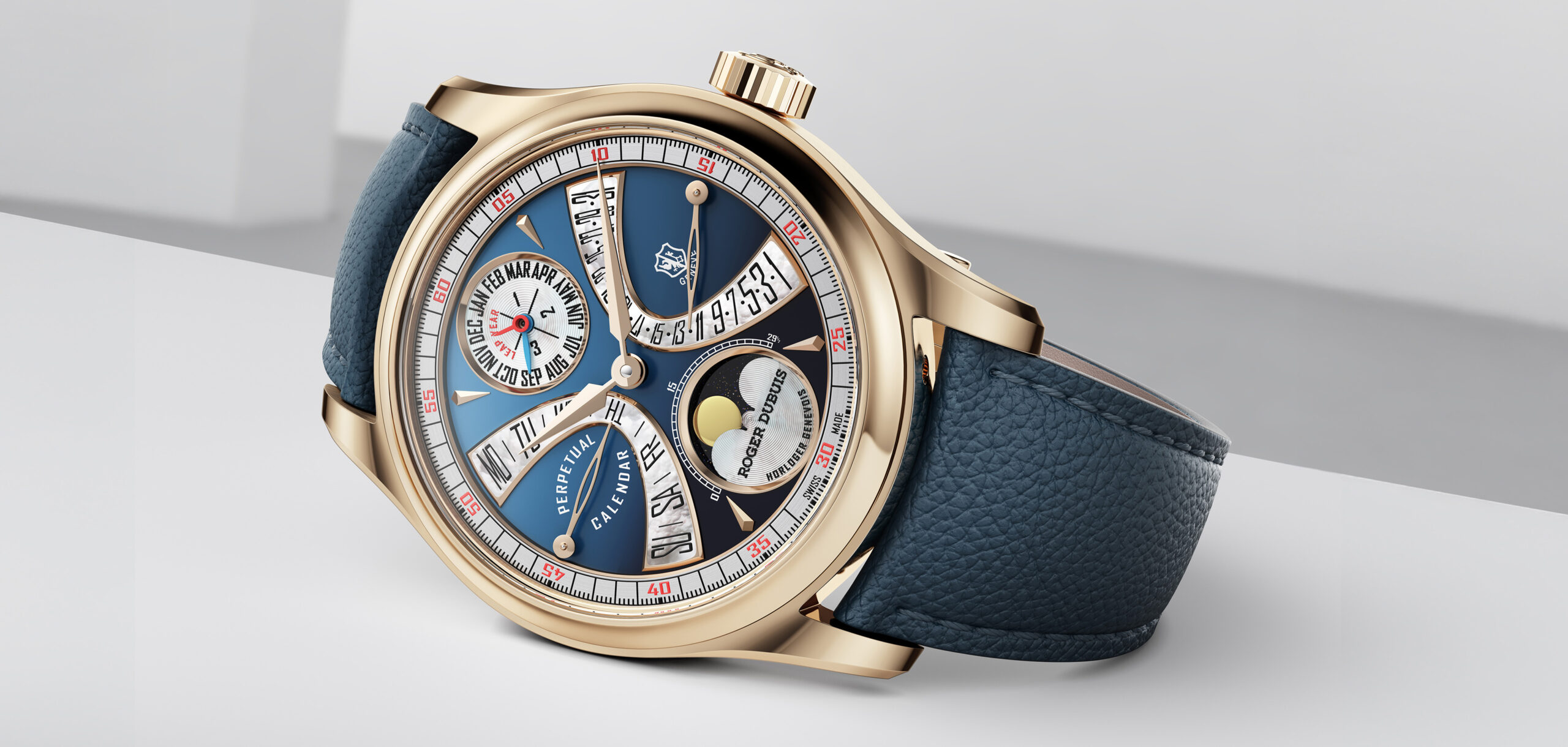Technically, the watch revives the RD14 calibre, the Maison’s first in-house automatic movement, and pairs it with the RD72 perpetual calendar module. Together they form the RD1472, a modern construction of 307 components, adorned with fifteen distinct finishing techniques. From Geneva stripes to mirror polishing, every detail underscores the virtuosity of the Maison’s artisans. The movement proudly bears the Poinçon de Genève, a seal of excellence that has accompanied Roger Dubuis creations since the beginning.