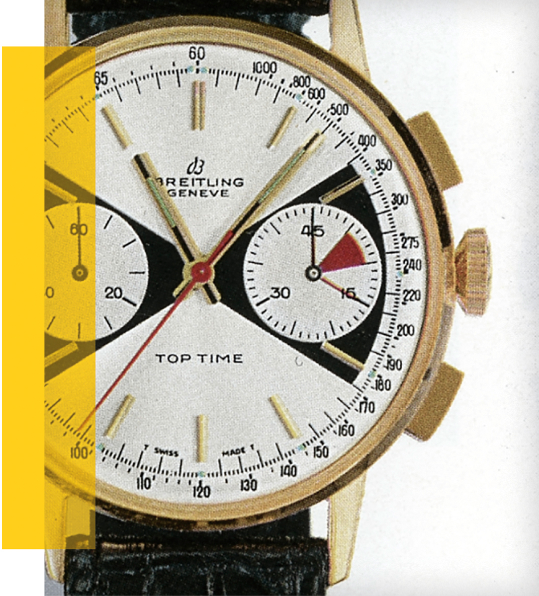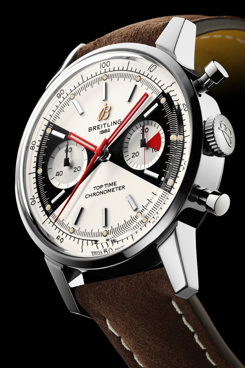 More than half a century after introducing its Top Time watch, Breitling is launching an updated and upgraded model. Like the 1960s model that inspired it, the newBreitling Top Time has an unconventional design that makes a bold style statement. A first glance at the dial, which has long been known to collectors as the Zorro dial, makes it clear that this is a watch that doesn’t take itself too seriously. But that playful face doesn’t disguise the superb chronograph performance, which is pure Breitling.
