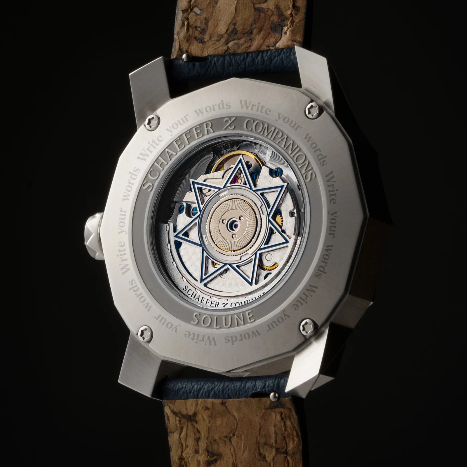 At the heart of the Octolune case lies its defining gesture: the eight‑sided bezel. The octagon has long symbolized balance and transition, a bridge between the circle and the square, between fluidity and structure. In the hands of Schaefer & Companions, it becomes a signature—an architectural statement that reframes the dial with a calmer, more harmonious rhythm.