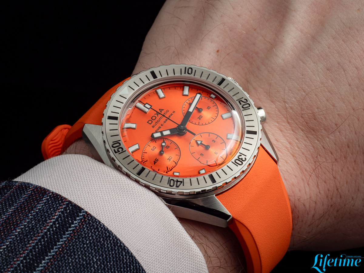 Also among the more approachable watches, my encounter with the orange SUB 200 C-GRAPH II left me with dreams of summer, of having fun and of how to be bold and practical. Priced under 3000 euros price point this glorious Tri-Compax model ticks all the boxes for a tool watch: affordable, legible (and very visible), multiple strap options, easy to wear 42mm steel case and good water resistance. As a true “diver”, the watch features a unidirectional rotating steel bezel with the triangle indication highlighted with white Super-LumiNova.