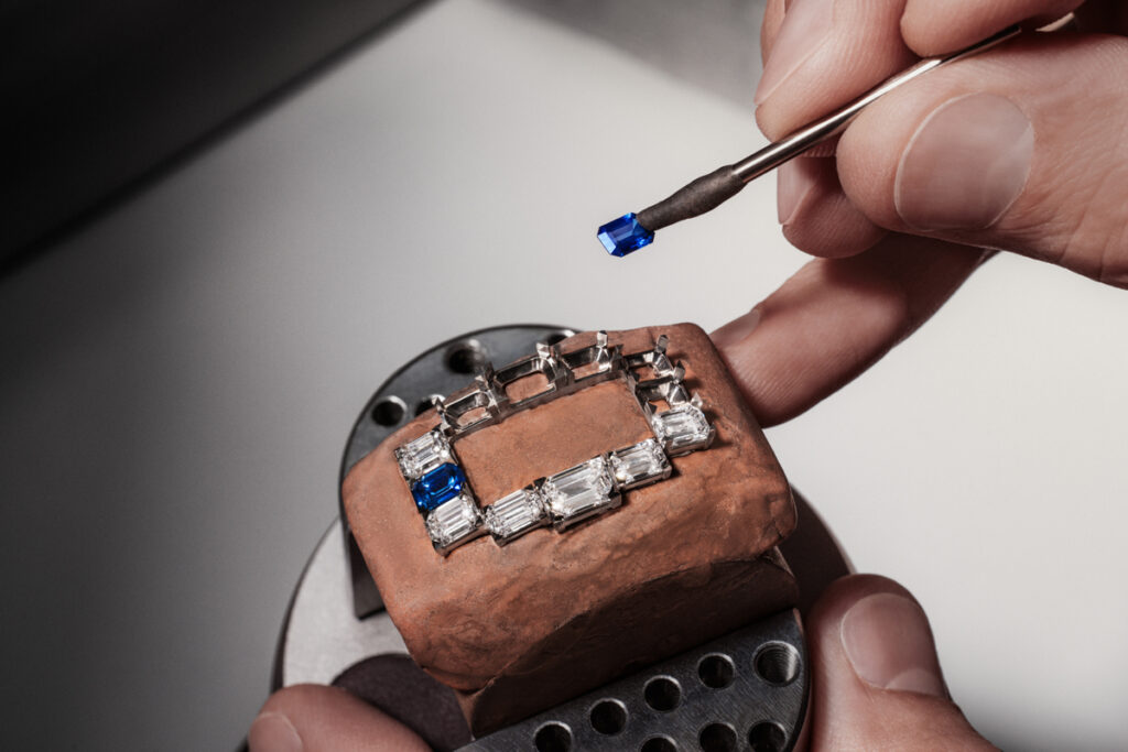 Beyond stone choice and metal, craftsmanship reveals itself in discreet engineering: claw settings shaped like branches of the Maltese Cross form a hidden signature where four stones meet, and clasps, fastenings and the time-setting crown are carefully concealed beneath the gem fields. These details fuse brand identity with functional elegance, so that ornamentation and mechanism coexist without compromise.