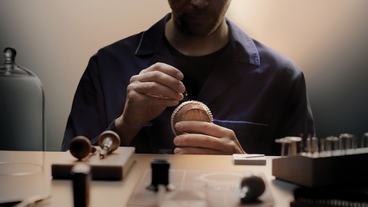The development of the secret mechanisms is particularly challenging. The system that reveals the dial must be tiny enough to remain completely hidden within the rows of diamonds, its position known only to the wearer. When activated, a small section of the bracelet opens to reveal the time; once released, the dial disappears back into the flow of diamonds.