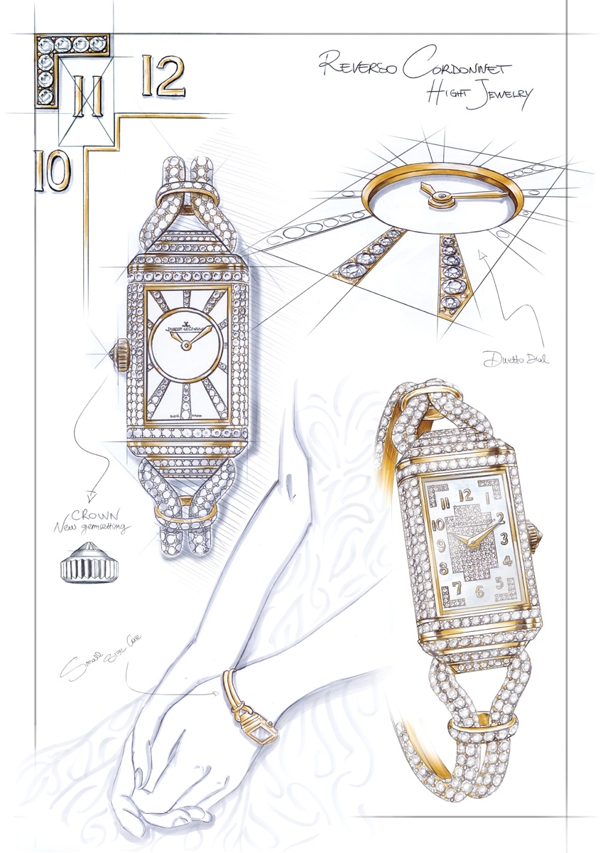Another extraordinary example is the Reverso One Cordonnet Jewellery, which reinterprets a design first seen in 1933. Its simple black cord, the ‘little black dress’ of watch bracelets, which epitomised the refined elegance of the Art Deco period, has been transformed into a supple braid of gold and diamonds. This remarkable timepiece features the ingenious Duetto system, with two different dials set back-to-back, allowing the watch to be reversed to reveal a jewelled face for evening wear.